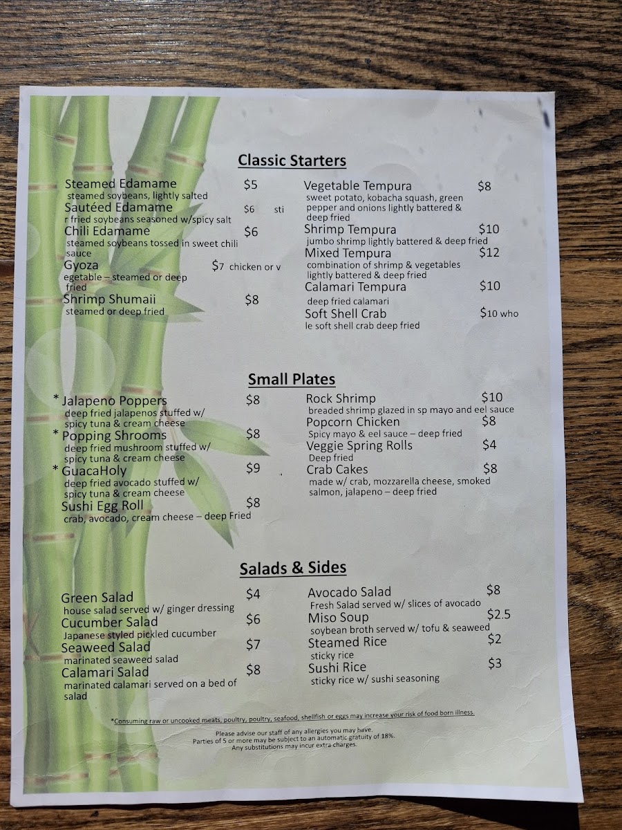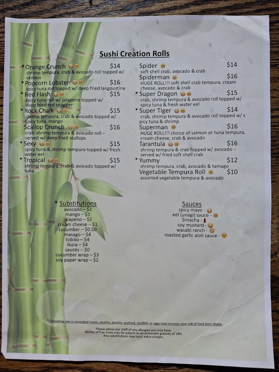 Tokyo Sushi, located at 239 Elm St, Lawrence, KS, offers a diverse and mouthwatering menu that caters to all tastes. Starting with their Classic Starters, the options include Steamed Edamame and Sautéed Edamame for those who prefer a light, healthy bite. For a little extra kick, the Chili Edamame delivers a spicy flavor, while the crispy Gyoza and Vegetable Tempura provide a satisfying crunch.